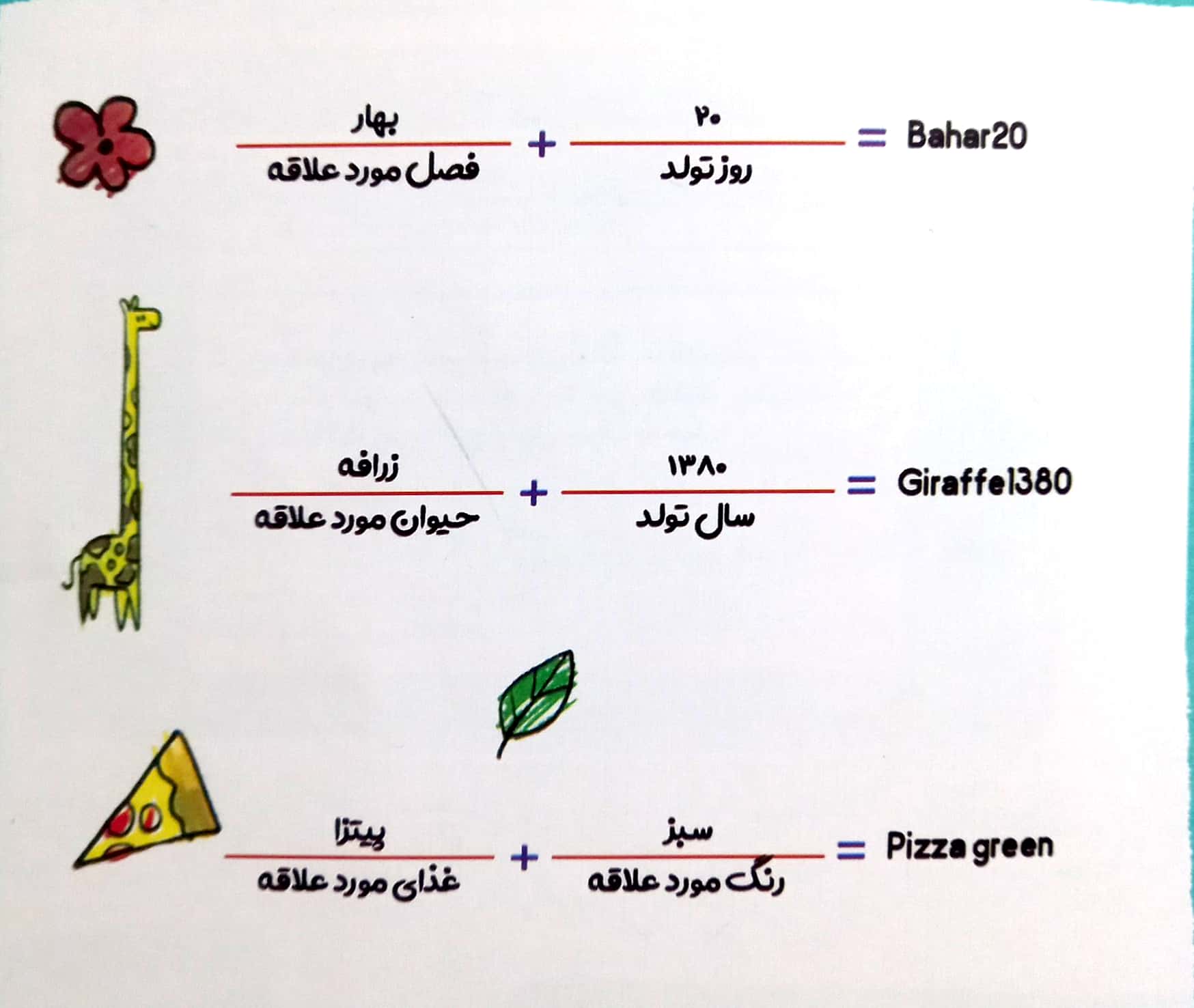 اسم خودتان، اسم حیوان خانگی تان، نام فامیل، دوست و